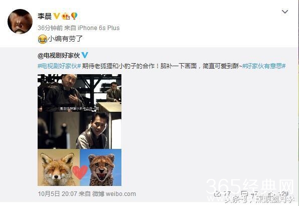李晨凌晨转发自己参演的电视剧《好家伙》的官方微博,该微博发文称:期待老狐狸和小豹子的合作,脑补一下画面,简直可爱到酥~