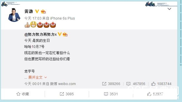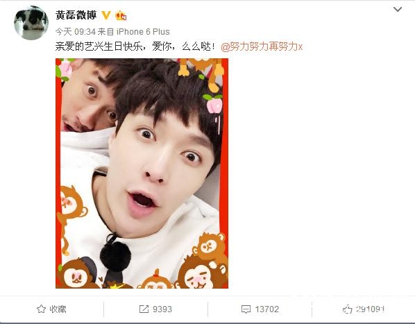 黄磊:亲爱的艺兴生日快乐,爱你,么么哒!