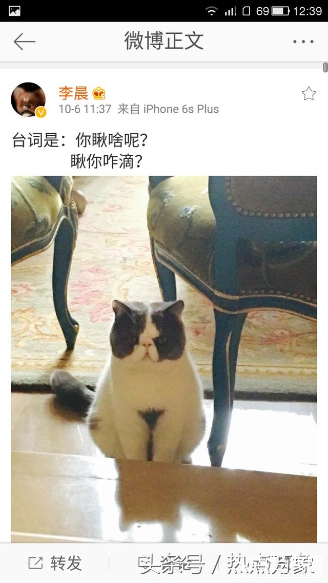 原来,李晨昨天发布了一条微博,一只小猫正蹲在那里盯着镜头,微博原文是“台词是:你瞅啥呢?瞅你咋滴?”