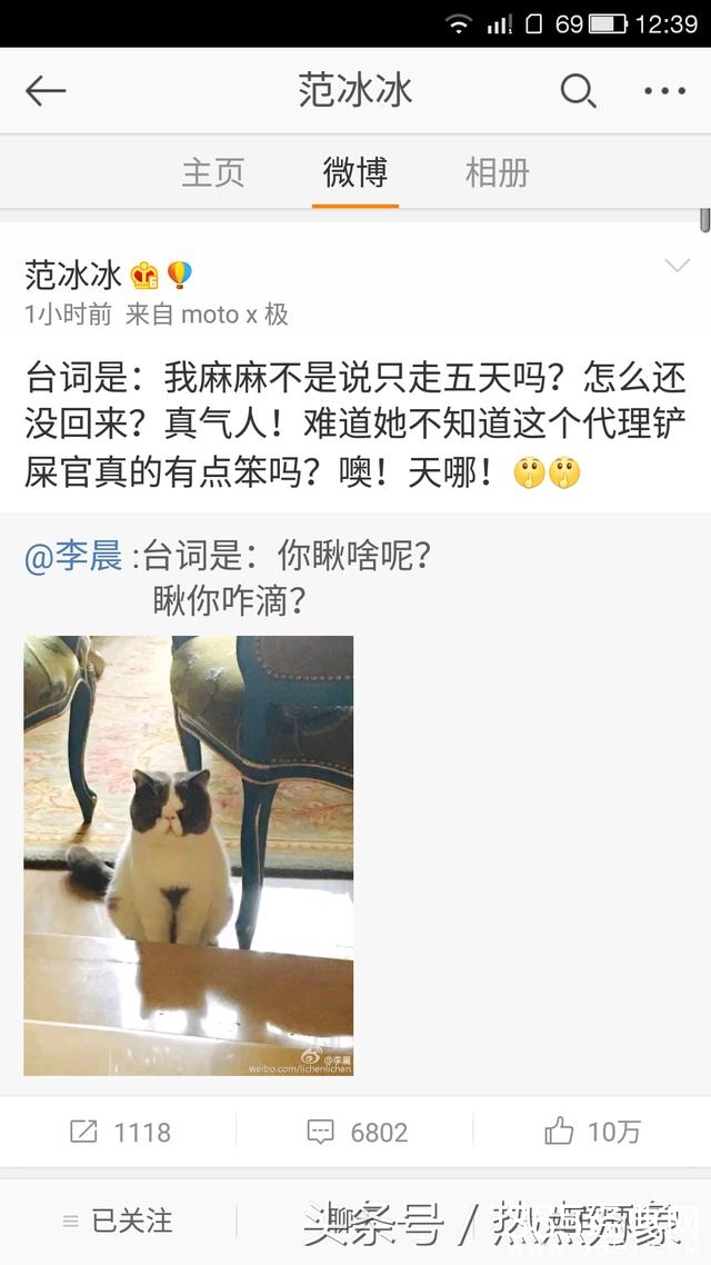 一小时前,范冰冰更新了一条微博,原文是“台词是:我麻麻不是说只走五天吗?怎么还没回来?真气人!难道她不知道这个代理铲屎官真的有点笨吗?噢!天哪!”这条微博被网友纷纷指责秀恩爱,被灌了一肚子狗粮。