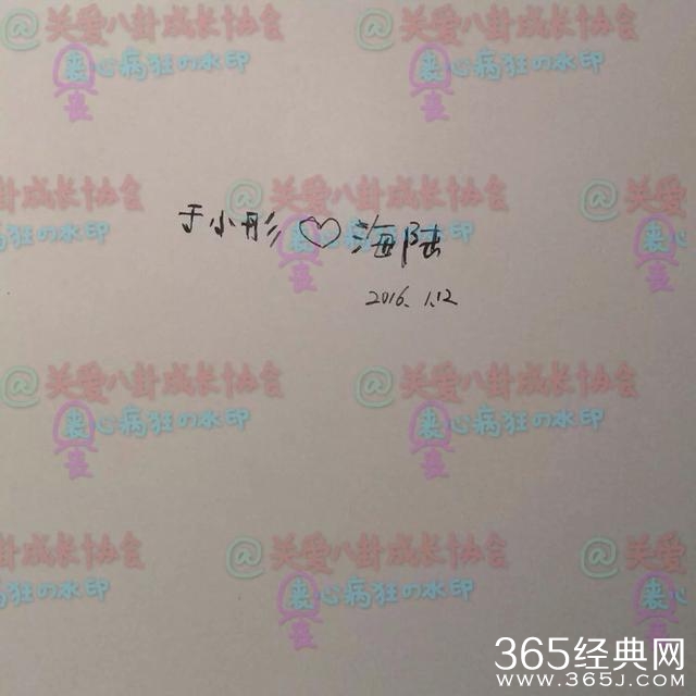 有网友爆料,在韩国首尔塔,有于小彤和海陆的签名