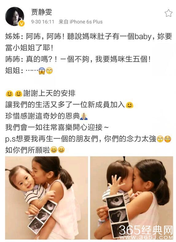 马上要3个宝宝的贾静雯更有女人味道,晒孕照的手法也是独一无二,梧桐妹懂事,咘咘可爱。