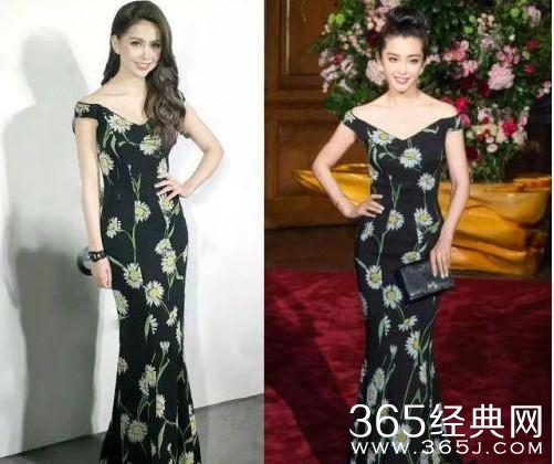 一袭黑白雏菊印花露肩礼服裙浪漫又清新,昆凌和李冰冰撞衫这条裙子,一个优雅大气,一个甜美可人,各有各的风格。