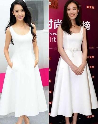 倪妮聪明就聪明在给平淡无奇的裙子加了一个白色的腰带,立刻让自己的身材优势变得非常明显。