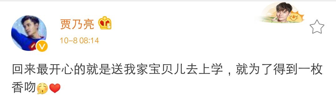 国庆节过后就又要继续学习工作了,今天一大早贾乃亮就尽职尽责地送馨爷上学去了,甜馨背着粉色的小书包,扎起了可爱的丸子头,然而狗啃的刘海却很是抢镜。
