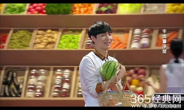 注意他手上抱的西瓜,做牛肉为什么要抱个西瓜呢。还满脸的地主家傻儿子的笑容。