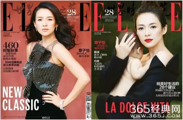 《ELLE》10月上刊是刚产后复出的章子怡,双封面上还有她的女儿醒醒入镜。