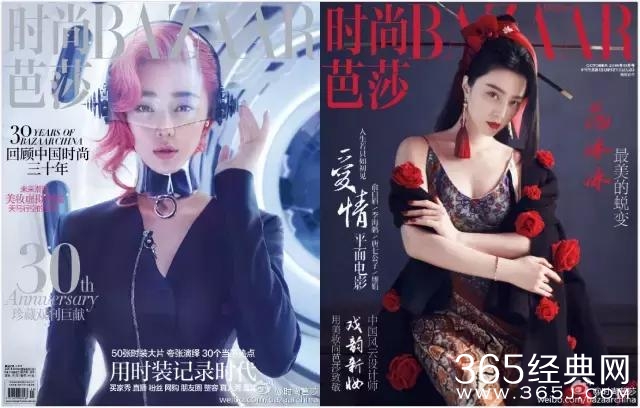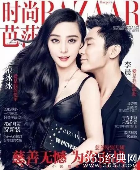 《时尚芭莎》去年9月上刊打感情牌封面是李晨和范冰冰,9月下刊是造型很奇怪的张静初。