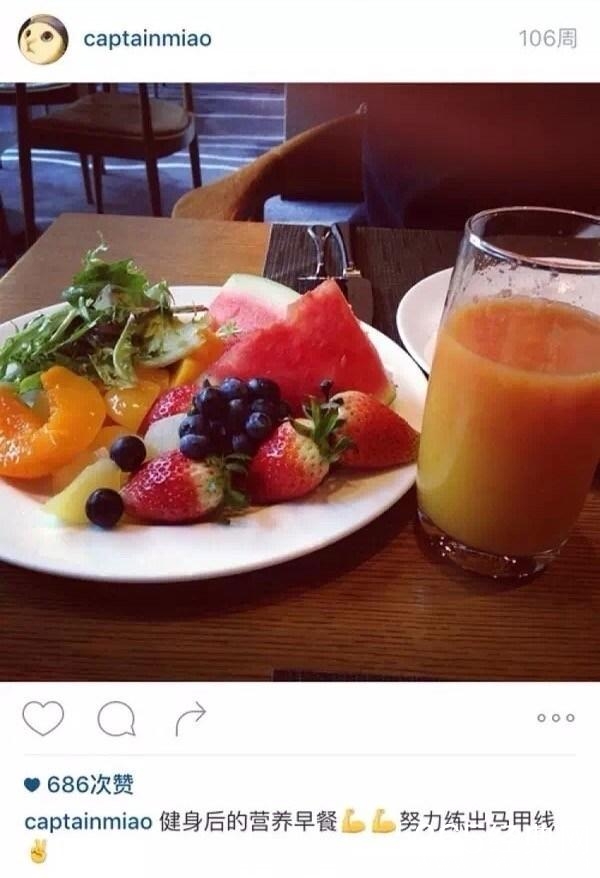 印象中,他的身材真是挺好的 ,马甲线马上就要出来了:水果拼盘,果汁 是不是可以吃饱呢?