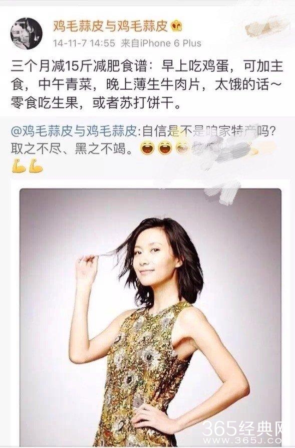 论减肥,她曾自爆称:“吃了一年番茄黄瓜,要么瘦要么死!”坚持吃了一年的清水煮番茄黄瓜后,她就成功将体重降到了两位数,之后她的食谱里加入了鸡蛋,又坚持了一年。看来做什么事情都是要坚持的!