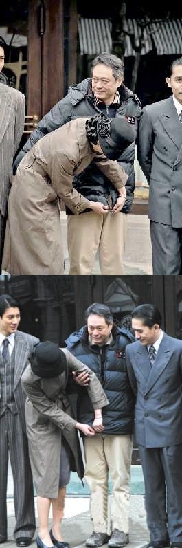 据说当时是在该电影的新闻发布会现场,由于天气寒冷,导演李安试图把自己羽绒服的拉链拉上,但怎么也没有成功!这时,汤唯就俯身帮助李安,也是费了好大的功夫才拉上!这让李安尴尬,一旁的梁朝伟和王力宏则露出神秘的微笑!曝光20明星大尺度床戏 真实堪比不雅视频图