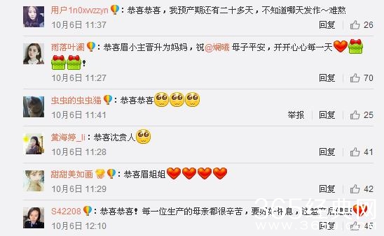 10月6日,沈贵人斓曦发微博称:六日凌晨,(盼宝诞生记)圆满杀青,万里长征走完了顺产的第一步,身长50厘米,体重6.6斤,感谢大家的祝福,母子平安!大师兄,你好,人生的新篇章就此开启,我们爱你!