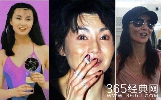 容颜变老,容颜变得灰暗、褶皱、变形。张曼玉的脸部和眉毛,都已经变得非常明显了,有一种老相开始出现,刘嘉玲、那英化了妆还好。