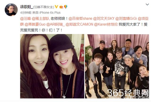 “老师师娘!我爱死大家了!爱死爱死爱死!你!们!了!”好歌声学员徐歌阳晒出与章子怡合影以及与大家的合影并圈汪峰章子怡写道。