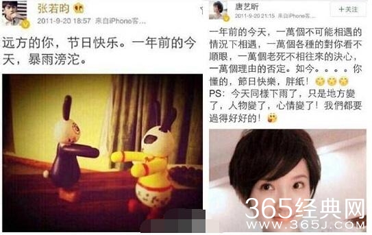 原来,唐艺昕原名唐婷,在五年前就与张若昀疑似相恋,不仅有互动微博,更疑似共同出游。