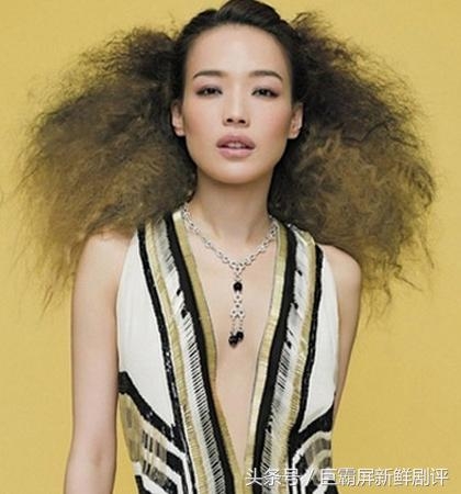 没有刘海的中分爆炸头,展露巩俐精致的面容,超级性感,很有巨星风范,这个发型设计比较倾向外国风格。
