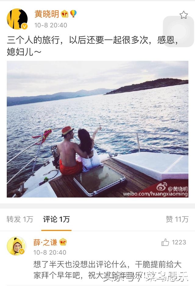 黄晓明发文说:三个人的旅行,以后还要一起很多次,感恩,媳妇儿~