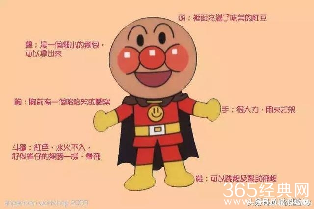 1☞面包超人:日本儿童动画《面包超人》里的主人公名为(红豆)面包超人,有着红通通脸颊的大圆饼脸,是个胖嘟嘟的健康小子,他有一颗正义的心,誓言维护森林正义,甚至不惜牺牲自己。
