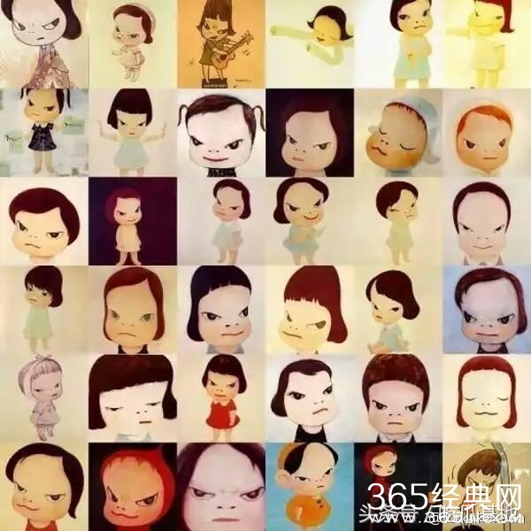 2☞奈良美智:一位日本著名漫家名为奈良美智,他笔下的人物,脸上那对眼尾上吊、不怀好意的双眼,那种眼中流露出不友善的神情,同时又身处在寂寥、淡漠背景中的画作主角们,不禁让人由怜生爱。虽然诡异,可这样一个极其有力向世人丢出永恒质疑的斜吊双眼的小女孩,揭开了这个虚伪、压抑、充满阴谋的世界。