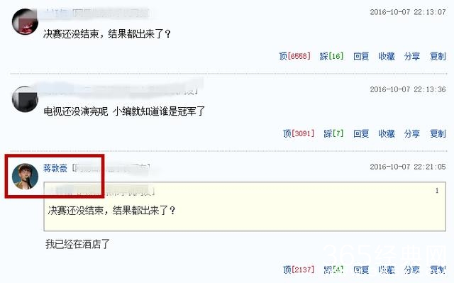 然而,电视上还在直播节目的时候,网上已经有了比赛结果,22点06分已经有新闻稿称蒋敦豪夺冠,这让人有些怀疑,冠军是不是早已内定了??