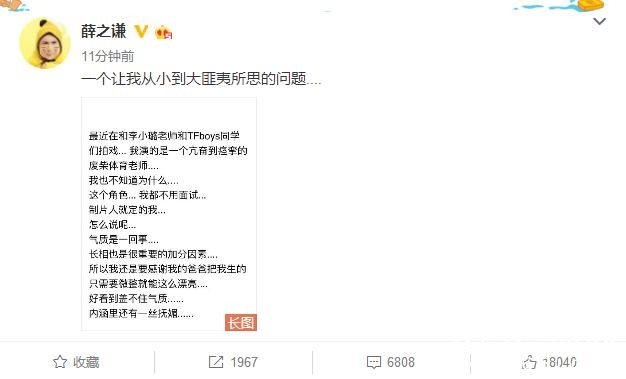 今天下午,“段子手”薛之谦更新了一条微博:一个让我从小到大匪夷所思的问题......