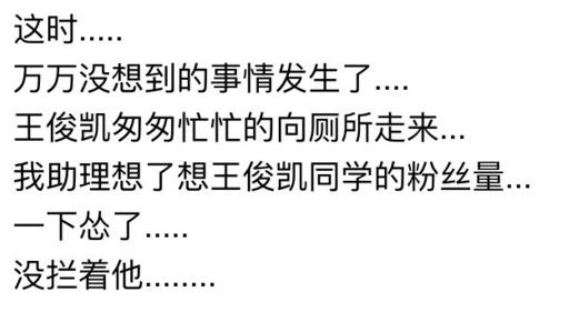 但,这时,万万没想到的事情发生了,王俊凯也跑来上厕所了,考虑到王俊凯的粉丝量,薛之谦的助理一下子怂了...就没拦着他......