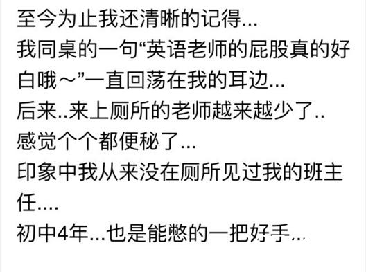 薛之谦说,他从小到大都觉得很匪夷所思的一件事就是,学校的厕所一个个都是隔断......没有门(ps:这是薛之谦拍戏所在学校的厕所哦,哪位神通广大的网友能扒出这个厕所是哪所学校的)
