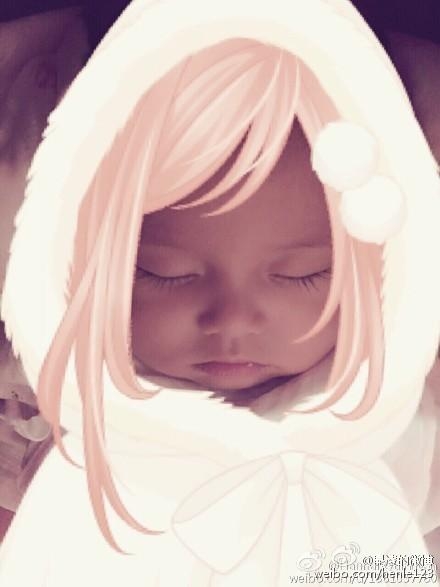 唯一一次的正面照,还是闭着眼睛的,但是看着眼睛的长度,还有那逆天的长睫毛,应该会像妈妈的大眼,杰伦公主的小眼还是算了吧!