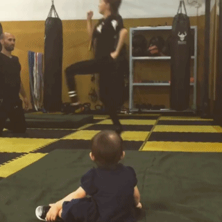 而在10月6日又曝光了一组昆凌练习的影片,并且她请来了“特别嘉宾”来观看,粉丝兴奋点开影片一看,原本要赞叹她的霸气踢腿,大家却立刻被背对镜头的小周周吸引住目光啦!抢镜的背对镜头的小周周穿著蓝色小洋装、套上黑白色系的小运动鞋、认真又淡定地抓著小脚脚看她练习。