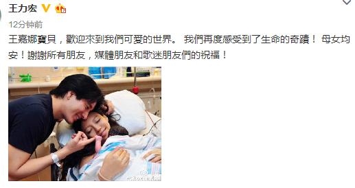 王力宏今日在微博报喜家中的二胎小公主顺利出生,母女平安。“王嘉娜宝贝,欢迎来到我们可爱的世界。我们再度感受到了生命的奇迹!母女均安!谢谢所有朋友,媒体朋友和歌迷朋友们的祝福。”