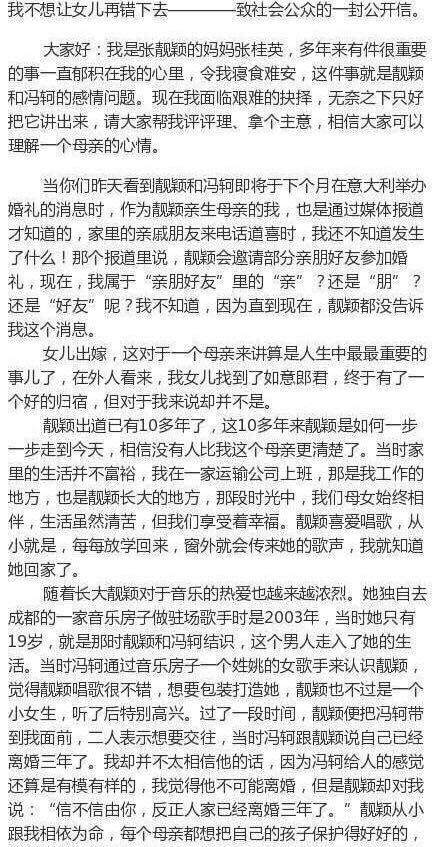 张靓颖和冯珂大婚在即,本来是受到众人祝贺,却不料最该祝贺的人,靓颖妈妈今日却发布公开信反对女儿婚事,手撕女婿!