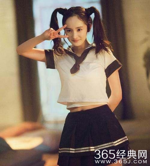 杨幂的校服装是《何以笙箫默》中的造型,等着黄教主回家时准备施展的“制服诱惑”,一身校服装性感撩人妩媚妖艳,胜过其他人的清纯天真。