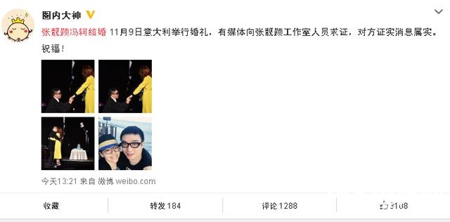 据爆料,今日张靓颖与冯科在意大利举行婚礼。经媒体向其工作室求证,对方也给予证实。