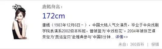 唐嫣官方身高为172cm,还有一个说法为170CM,我们就按170算。