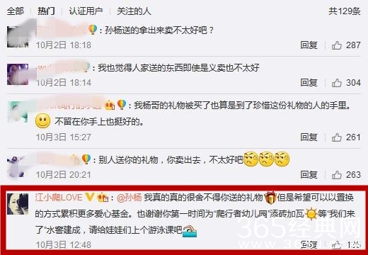 有网友表示孙杨将手表送给江一燕,江一燕可以随意处置,拿去做慈善无可厚非;然而更多网友表示,拿着别人送你的礼物再卖掉,确实缺少尊重,即使做慈善义卖,咱也不差那5000块吧!