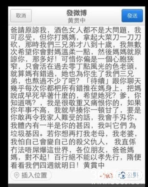 “我会手刃你,我体内有一半是你的基因,我叫它们为垃圾基因。若你想再打我老母,我老婆,我怕自己会变自己的杀父仇人”足以见得,他对父亲有多么的憎恨。