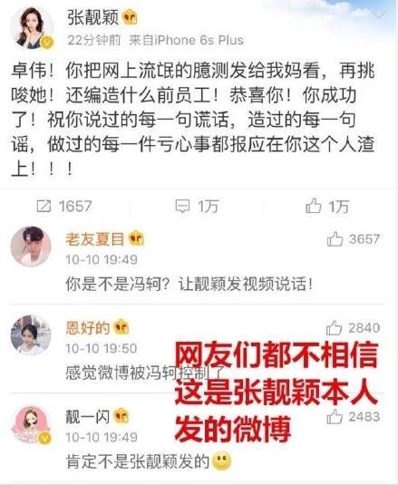 纷纷质疑其真实身份,认为发微博的人根本不是靓颖本人