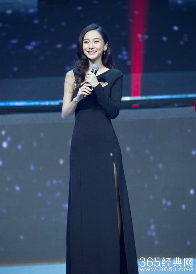 杨颖,黑色长款开衩裙,时尚性感显气质