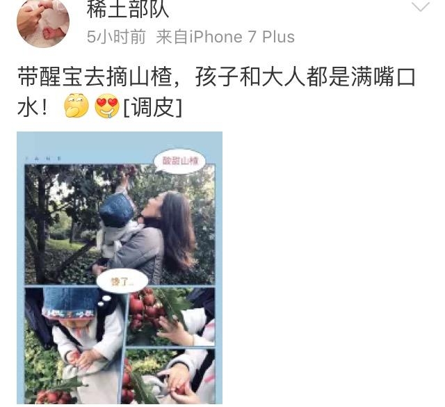 似乎暗指想象汪峰陪着她。可惜幻想只是幻想,在葛荟婕发博没多久,章子怡作为汪峰正妻和汪峰女儿醒醒的妈妈,开始了她的d晒娃大业,带着醒醒摘山楂的照片特别有爱: