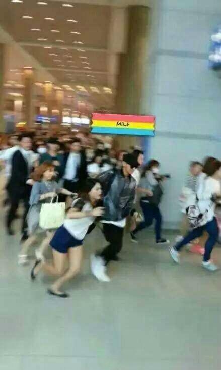 虽然模糊,但这就是黄子韬没错。你以为这是什么灾害现场?并不是,是黄子韬在跟粉丝赛跑。
