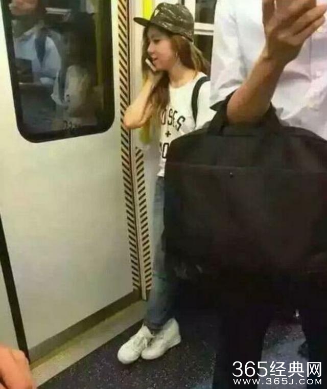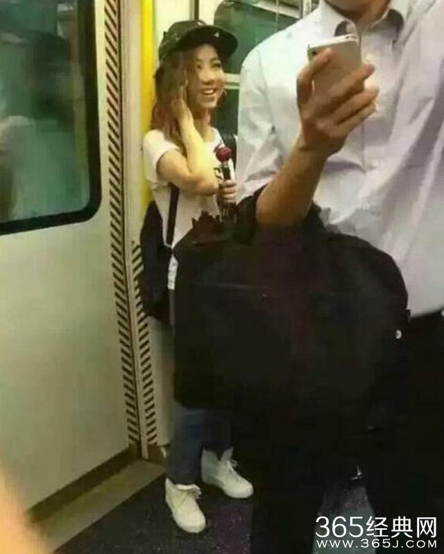 在地铁上看到邓紫棋在打电话 有说有笑的
