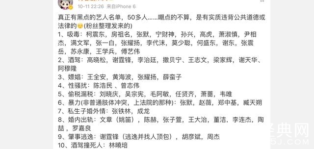 今日有网友整理了一份真正有黑点的艺人名单,50多人…