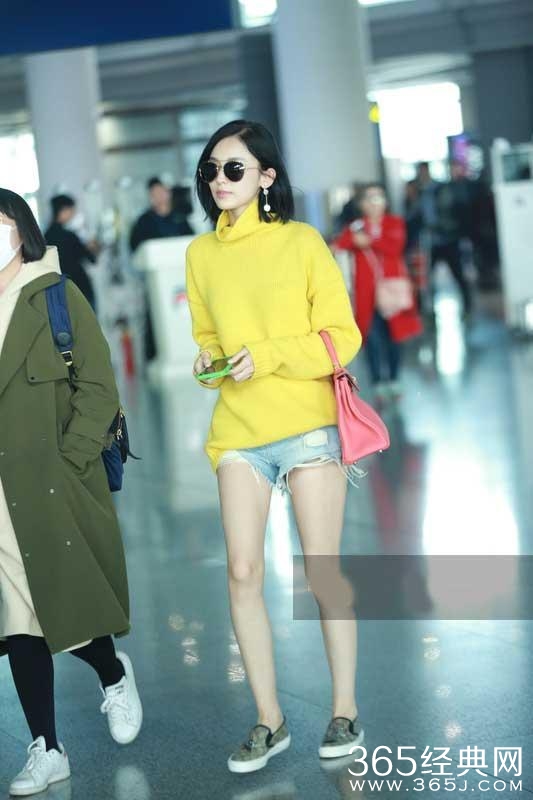 其实,古力娜扎可以说是有大长腿的女生,黄色上衣搭配蓝色热裤,大腿看起来没真不瘦呀。