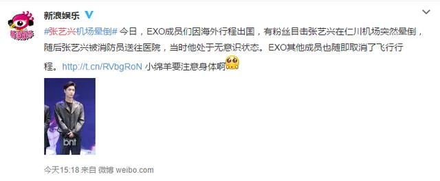 据韩国媒体TV REPORT报道,11日EXO成员们因海外行程出国,在机场张艺兴LAY突然晕倒被紧急送往医院,当时是失去意识的状态。据了解,有粉丝在现场目击了这一情况。而目前要看张艺兴的状况再考虑是否出国。曝光20明星大尺度床戏 真实堪比不雅视频图