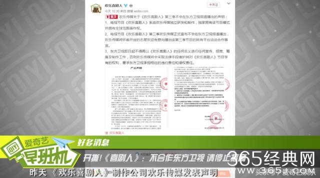 昨天,《欢乐喜剧人》制作公司欢乐传媒发表声明,称《欢乐喜剧人》第三季将不会在东方卫视频道播出,东方卫视也不得再以《欢乐喜剧人》的任何名义进行任何宣传、招商、筹备及制作工作,否则将承担法律责任。
