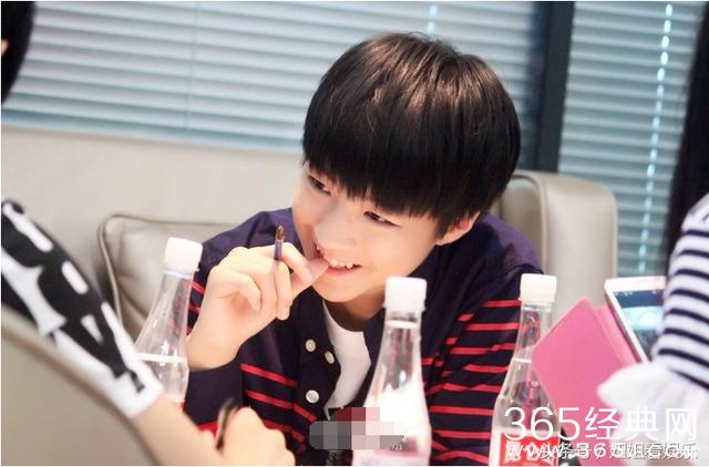 王俊凯小虎牙咬手指这张十分可爱,带上红色的手环,双手更显精致!