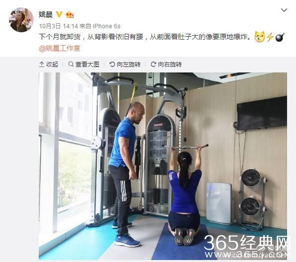 而且,怀孕期间的姚晨一直坚持锻炼,适当的锻炼,是很好的胎教哦~对宝宝的健康和性格都有益处(不过要有专业教练指导啦!~)
