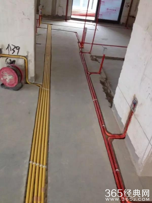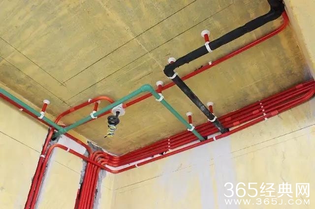 给水管禁止走地面,从墙面或顶面穿越顶部加吊卡。减少维修拆除墙体或地面装修材料;管路走向清晰。