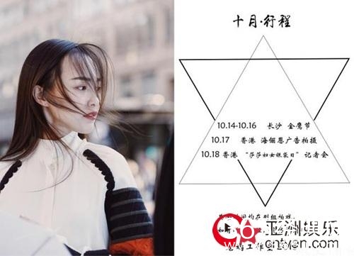 10月12日晚,唐嫣工作室官方微博曝唐嫣行程,并写道:“热烈庆祝我大糖总唐嫣回国特发放福利,杂志拍摄花絮高清大图,回国短短几天也是行程满满,辛苦糖总了!”行程中显示,唐嫣将于的10月14日至16日在长沙参加金鹰节。