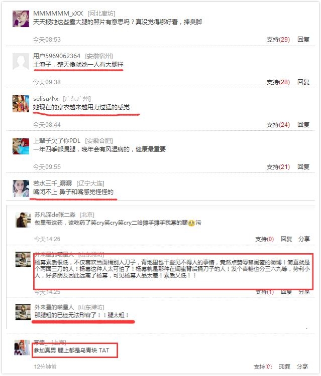 大幂幂被黑不是一天两天的了,几乎全部是黑杨幂的,天天只会露腿,一年四季都露腿,杨幂素质差等等,到底如何,说实话,小编我还真不知道,所以也不做评价了,毕竟每个人心里都有一个自己的偶像。